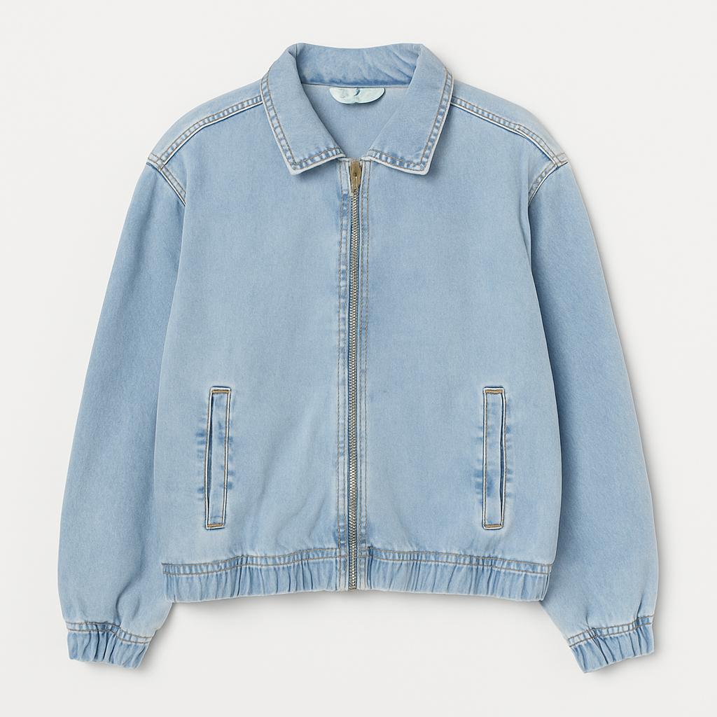 Questa giacca di jeans azzurro è il perfetto alleato per le avventure all'aria aperta! Con il suo design classico e il taglio comodo, offre calore e stile senza tempo. Le tasche laterali sono pratiche per riporre piccoli tesori, mentre il bordo elastico conferisce un tocco trendy. Leggera e versatile, è ideale per le fresche serate estive o per i primi giorni di autunno. Nonostante sia un capo usato, si presenta in ottime condizioni, pronto per impreziosire il guardaroba del tuo piccolo fashionista!