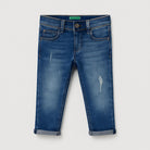 Questi jeans skinny per bambini sono un vero must-have nel guardaroba dei più piccoli! Realizzati in morbido denim, presentano una tonalità di blu vivace e accattivante, perfetta per ogni avventura. I dettagli effetto strappato aggiungono un tocco di carattere, mentre il fondo risvoltato dona un look moderno e trendy. La vestibilità comoda e il design versatile li rendono ideali per giochi, uscite e occasioni informali. Nonostante siano usati, sono in ottime condizioni, pronti per essere indossati da un giovane esploratore!