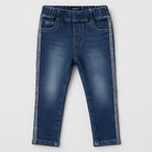 Questi jeans slim fit per bambini uniscono comfort e stile! Realizzati in denim blu scuro, presentano un elastico in vita per garantire una vestibilità comoda durante tutta la giornata. Dettagli glitter sulla parte laterale donano un tocco di scintillio, perfetto per le piccole che amano brillare. Ideali per ogni occasione, che sia un gioco al parco o una pizzata con gli amici, questi pantaloni usati si trovano in ottime condizioni e saranno un fantastico aggiunta al guardaroba!
