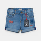 Questi adorabili pantaloni shorts in denim sono perfetti per le calde giornate estive! Realizzati in morbido tessuto denim lavato, presentano un color blu chiaro vivace e dettagli che attirano l'attenzione come ricami e toppe colorate. Con un taglio corto e sfrangiato, sono ideali per correre e giocare all'aperto. Comodi e versatili, possono essere abbinati facilmente a t-shirt o canotte. Nonostante siano un capo usato, si presentano in ottime condizioni e pronti per essere indossati da una piccola stilista! Un pezzo essenziale per un look fresco e divertente!