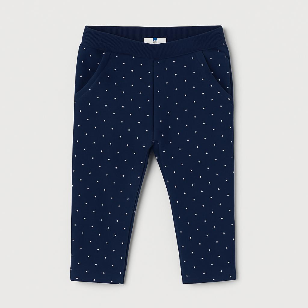 Questi adorabili leggins in color navy sono il perfetto mix di comfort e stile per le piccole! Decorati con simpatici pois bianchi, aggiungono un tocco giocoso a qualsiasi outfit. Realizzati in tessuto morbido e elasticizzato, sono ideali per le avventure quotidiane e i giochi. La vita alta elasticizzata e le tasche laterali pratiche rendono questo capo comodo e funzionale. Nonostante siano usati, sono in ottime condizioni e pronti a diventare il preferito della tua bimba! Un must-have nel guardaroba delle piccole fashioniste!