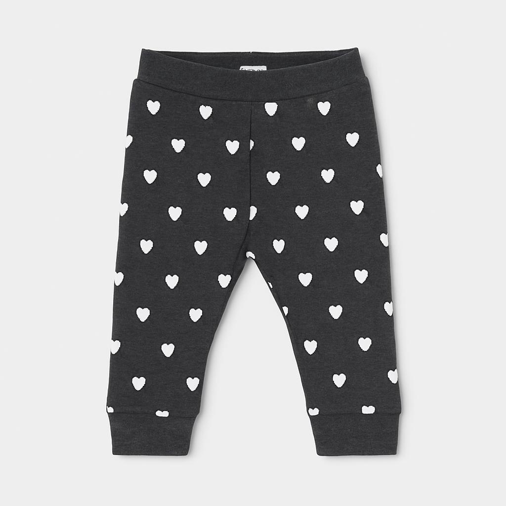 Questi adorabili leggins in cotone grigio scuro saranno un'aggiunta perfetta al guardaroba della tua piccola! Decorati con dolci cuoricini bianchi, portano un tocco di tenerezza e allegria. Il taglio pratico e comodo li rende ideali per tutte le avventure quotidiane, che siano giochi in casa o passeggiate al parco. Facili da abbinare con magliette colorate, questi leggins sono un capo usato ma in ottime condizioni, pronto a far brillare ogni look. Un must-have per le piccole amanti dello stile!