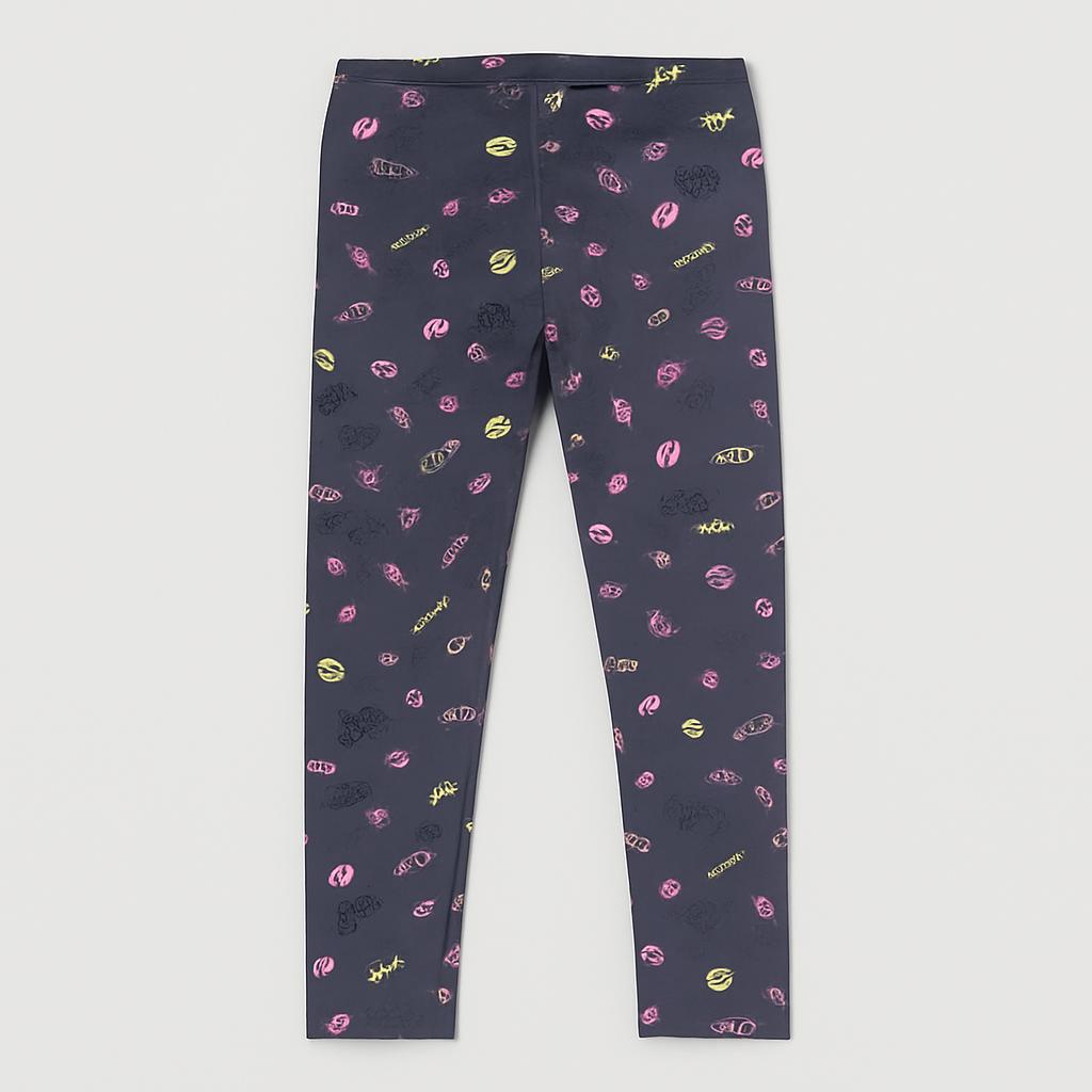 Questi divertenti leggings in stile urbano sono l’aggiunta perfetta al guardaroba della tua piccola! Realizzati in un morbido tessuto elasticizzato, sono decorati con un vivace motivo grafico dai colori brillanti su uno sfondo grigio scuro. Le scritte e le icone giocose rendono questi leggings un capo unico e alla moda.