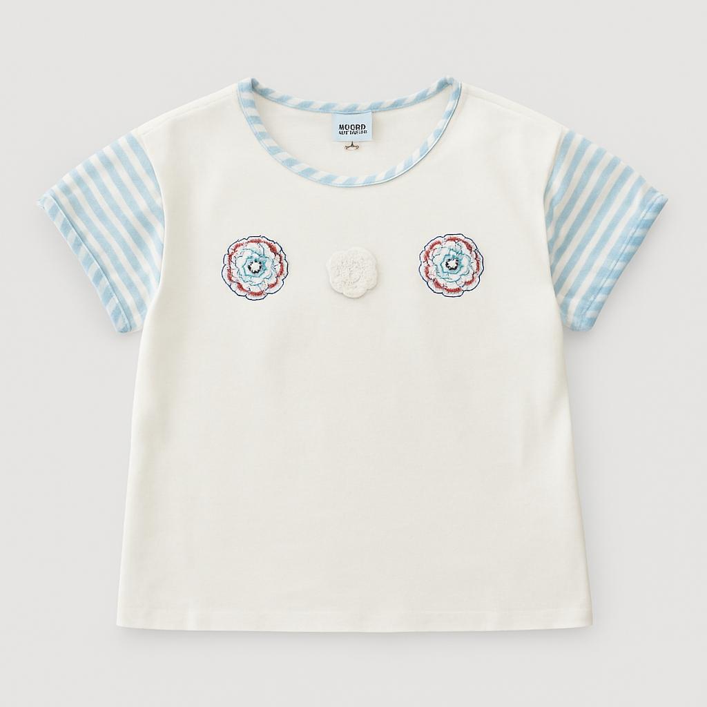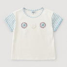 Questa adorabile t-shirt dal design fresco è perfetta per le piccole esploratrici! Realizzata in morbido cotone, la maglietta presenta un'elegante combinazione di bianco e azzurro. Le maniche a righe e i delicati ricami floreali sul fronte aggiungono un tocco giocoso e che farà certamente brillare il look di ogni bimba. Il taglio comodo e leggero è ideale per giornate di gioco e avventure estive. Nonostante sia un capo usato, è in ottime condizioni, pronto per essere indossato con stile e comfort! Un must-have per il guardaroba delle piccole fashioniste!