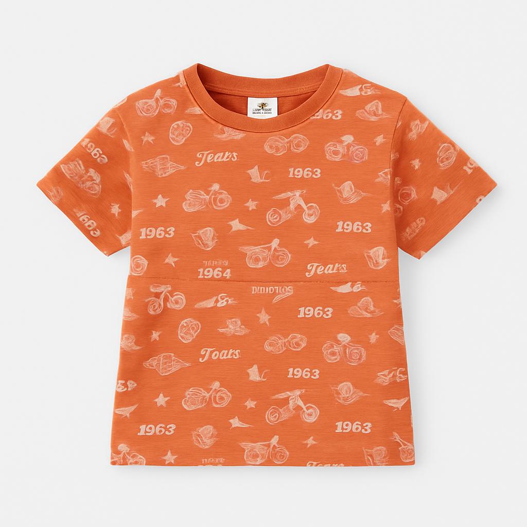 Questa simpatica t-shirt arancione è il perfetto alleato per le avventure quotidiane dei più piccoli! Caratterizzata da un vivace motivo stampato con icone giocose e ingegnose, questa maglietta regala un tocco di allegria al guardaroba. Il morbido cotone offre comfort e leggerezza, rendendola ideale per le giornate estive, giochi e scoperte all'aperto. Nonostante sia un capo usato, si presenta in buone condizioni, pronta a fare felice un piccolo amante dello stile. Un must-have per ogni piccolo esploratore!