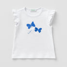 Questa adorabile t-shirt bianca è perfetta per le piccole sognatrici! Con delicate ruches sulle spalle e un'incantevole stampa di farfalle blu, aggiunge un tocco di magia a qualsiasi outfit. Realizzata in un cotone morbido, è comoda e traspirante, ideale per le giornate di sole e le avventure all'aperto. Nonostante sia un capo usato, si presenta in ottime condizioni, pronta a far brillare il guardaroba della tua bambina. Un'ottima scelta per chi ama i look freschi e giocosi!