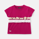 Questa adorabile t-shirt magenta è un vero tesoro per le piccole stiliste! Realizzata in morbido cotone, presenta una fascia decorativa in pizzo bianco e nastro crema che aggiunge un tocco di eleganza e originalità. Le maniche corte e il taglio leggermente svasato la rendono comoda per ogni avventura estiva. Nonostante sia un capo usato, è in ottime condizioni e pronta per donare un sorriso a chi la indossa. Perfetta per giochi o passeggiate, questa t-shirt valorizzerà il guardaroba della tua bimba con un tocco di charme!