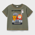 Questa adorabile t-shirt a maniche corte è un vero invito all'avventura! Con un vivace design che raffigura una simpática auto guidata da animali affettuosi, questa maglietta in tono verde salvia farà sorridere ogni piccola esploratrice. La scritta "LET'S GO TO ROAR" aggiunge un tocco di entusiasmo, perfetta per le giornate di gioco. Il morbido cotone assicura comfort tutto il giorno, mentre i dettagli a contrasto sulle maniche rendono il look ancora più accattivante. Anche se è un capo usato, si presenta in ottime condizioni, pronto per accompagnare tante nuove avventure!