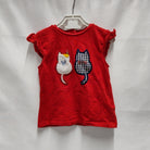 Questa adorabile t-shirt rossa è perfetta per la tua piccola amante degli animali! Con un'originale applicazione di due gattini che si affacciano l'uno all'altro, questa maglietta cattura l'attenzione con il suo design giocoso e affettuoso. Le maniche a volant aggiungono un tocco femminile e dolce, mentre il tessuto morbido garantisce comfort tutto il giorno. Nonostante sia un capo usato, è in ottime condizioni e pronta a diventare il favorito nel guardaroba della tua bimba. Ideale per giocare o per una giornata all'aperto, un must-have per le piccole fashioniste!