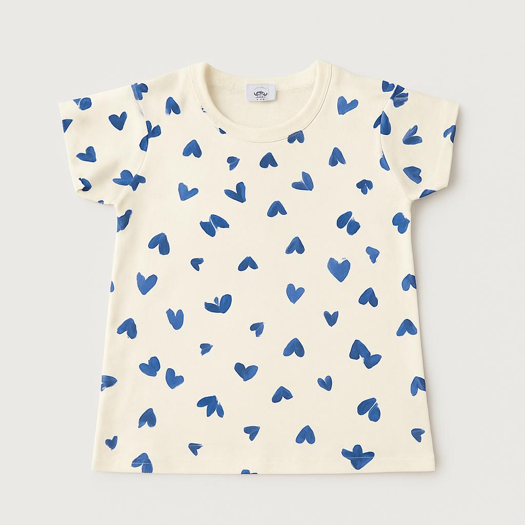 This adorable cotton tee is a true celebration of love! Featuring a sweet cream base, it's adorned with a vibrant blue heart motif, making it irresistible and perfect for every little heart. The short sleeves and relaxed fit ensure comfort during summer days and outdoor adventures. Even though it's used, this tee is in excellent condition, ready to bring a smile to your face! Perfect for little ones who love to express their personality in style!