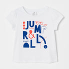 This adorable white Jean's T-shirt is perfect for little ones who love to have fun! With its fresh and vibrant design, it features the slogan "JUMP & ROLL" in a mix of bright colors, encouraging fun and movement. Made from soft cotton, it ensures comfort and freedom of movement, making it ideal for outdoor play or a day at the park. Despite being used, it appears in excellent condition and ready to become a new favorite in your child's wardrobe. A must-have for little explorers!