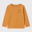 Questa adorabile maglietta a maniche lunghe in un caldo tono ocra è perfetta per piccole sognatrici! Realizzata in morbido cotone, offre comfort e libertà di movimento. La scritta "Follow Your Dreams" sul davanti esprime un messaggio positivo e ispiratore, perfetto per incoraggiare la creatività. Nonostante sia un capo di seconda mano, si trova in ottime condizioni, pronta per accompagnare ogni avventura quotidiana. Che sia per la scuola o i giochi all'aperto, questa maglietta è un'aggiunta stilosa e motivante al guardaroba!