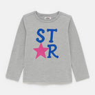 Questa adorabile maglietta a maniche lunghe è perfetta per le piccole stelle! Realizzata in morbido cotone grigio, offre comfort e calore durante le giornate più fresche. Il design gioca con un grande "STAR" in lettere blu e una stella fucsia che aggiunge un tocco di vivacità e allegria. Ideale per outfit casual, avventure all'aperto o momenti di gioco, è un capo usato ma in ottime condizioni, pronto per essere amato da una nuova piccola nomade. Un must per ogni guardaroba!