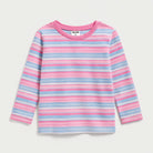Questa adorabile maglietta a righe è un'aggiunta vivace e versatile al guardaroba del tuo bambino! Realizzata in morbido cotone, presenta un gioco di colori pastello tra rosa, azzurro e bianco che sprigiona allegria. Le maniche lunghe la rendono perfetta per le fresche giornate primaverili o autunnali, mentre il taglio comodo offre libertà nei movimenti per tutte le avventure quotidiane. Nonostante sia un capo usato, si presenta in ottime condizioni. È il capo ideale per piccoli sognatori e avventurieri!