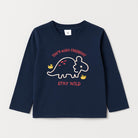 Questo adorabile maglione blu scuro è perfetto per i piccoli esploratori! Realizzato in un cotone morbido e comodo, presenta sul retro un simpatico ricamo di un dinosauro che invita a "stare selvaggi". Le maniche lunghe garantiscono calore durante le fresche giornate primaverili o autunnali. Nonostante sia un capo usato, mantiene in ottime condizioni e sarà un'aggiunta fantastica al guardaroba dei tuoi bambini, unendo comodità e stile in un solo outfit! Un vero must per i mini avventurieri!