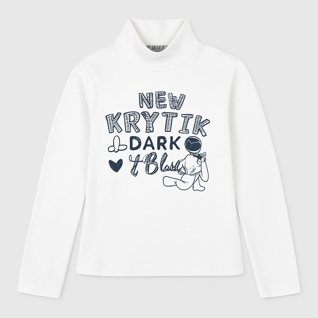 This delightful long-sleeved T-shirt is perfect for any child's wardrobe! Made from soft white fabric, it features the slogan "NEW KRYTIK" embellished with playful, colorful graphics. The cute bunny motif makes this piece even more adorable, perfect for any little fashionista. The high collar offers comfort and warmth on cooler days. Despite being used, it's in excellent condition and a great choice for casual, vibrant outfits. Ideal for school and outdoor play!