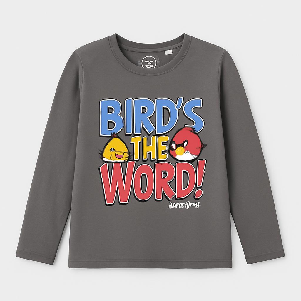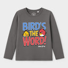 Questa adorabile t-shirt a maniche lunghe, firmata Angry Birds, porterà un sorriso sul volto di ogni piccolo fan del famoso videogioco! Realizzata in un morbido cotone grigio, è decorata con un vivace grafismo che riporta il divertente motto "BIRD'S THE WORD", accompagnato da allegri uccellini giallo e rosso. Il suo taglio comodo e le maniche lunghe la rendono perfetta per le giornate più fresche o per un look casual e divertente. Nonostante sia un capo usato, si presenta in ottime condizioni, pronta a far divertire e giocare con stile le piccole avventure quotidiane!