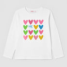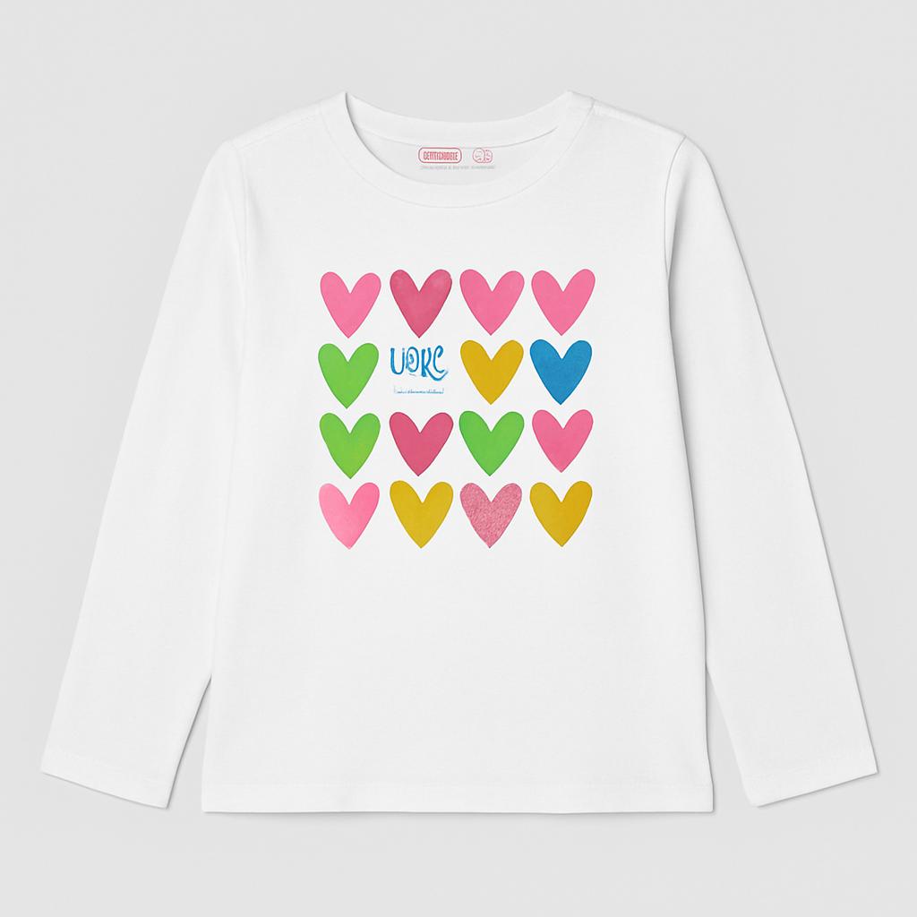 Questa adorabile maglietta a maniche lunghe è perfetta per le piccole sognatrici! Realizzata in morbido cotone bianco, presenta un vivace motivo di cuori colorati in rosa, verde, giallo e blu. La scritta "LOVE" aggiunge un tocco di dolcezza e affetto. Ideale per le fresche giornate primaverili o per essere indossata sotto una giacca nelle serate più fresche. Questo capo usato è in ottime condizioni e pronto per accompagnare la tua bambina in tante avventure. Non lasciartela sfuggire!