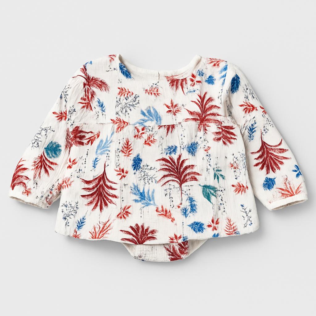 Questo adorabile body a maniche lunghe è perfetto per le piccole esploratrici! Realizzato in morbido cotone, presenta un delizioso motivo floreale in tonalità vivaci di rosso, blu e verde su sfondo bianco. Il taglio comodo e le maniche arricciate donano un tocco di eleganza e dolcezza. Ideale per ogni occasione, da una passeggiata nel parco a un incontro con gli amici, questo capo usato è in ottime condizioni. Un'aggiunta incantevole al guardaroba della vostra bimba, perfetto per esprimere la sua personalità esplosiva!