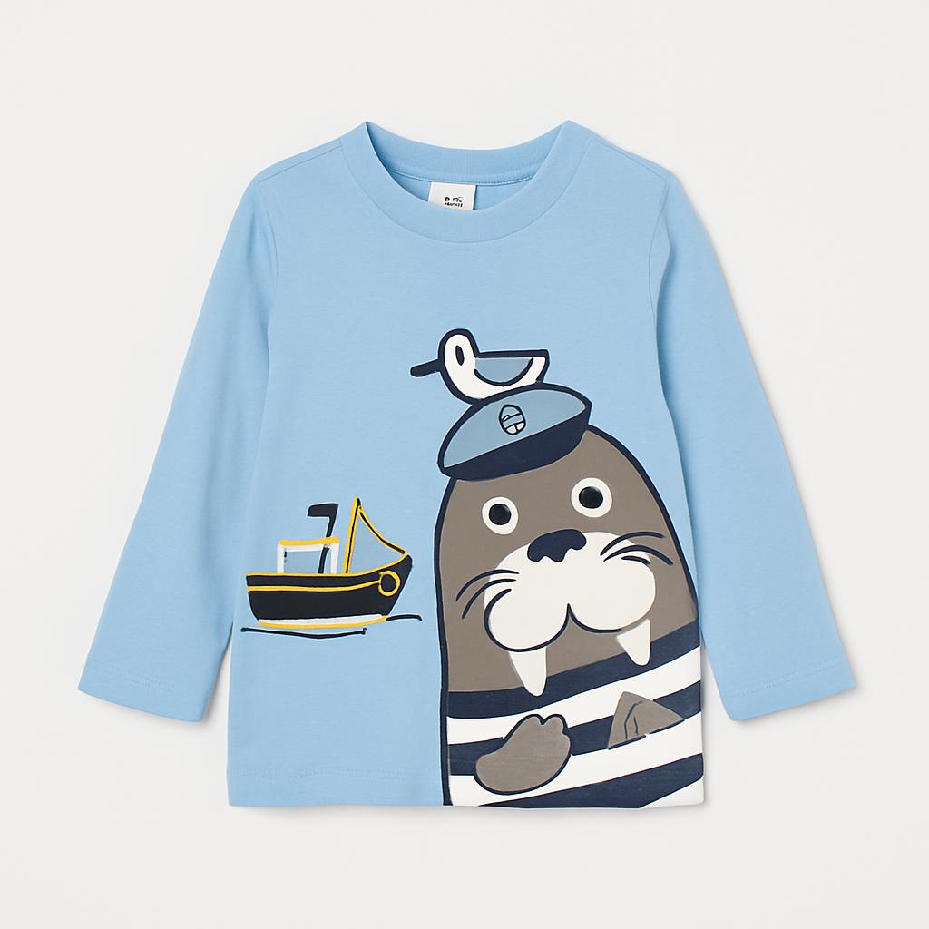 This delightful long-sleeve tee is perfect for little explorers! Made from soft blue cotton, it features an adorable print of a cute sea seal in a sailor-inspired style, along with a playful bird and a boat. The design is a mix of cuteness and adventure, perfect for autumn days or a casual look. Despite being pre-owned, it's in excellent condition, ready to accompany your little one on all their adventures! A must-have for any little sea lover's wardrobe!