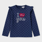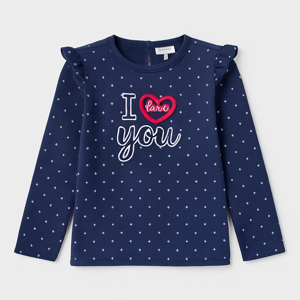Questa deliziosa maglietta a maniche lunghe è perfetta per le piccole sognatrici! In un affascinante tono blu scuro, è decorata con dolci pois bianchi e una scritta "I love you" che scalda il cuore. Le vezzose ruches sulle spalle aggiungono un tocco di eleganza e brio, rendendo questo capo unico e speciale. Realizzata in morbido cotone, garantirà comfort durante le avventure quotidiane. Nonostante sia un pezzo usato, si presenta in ottime condizioni, pronta per essere indossata e far brillare il guardaroba della tua bambina! Un'indispensabile aggiunta per ogni piccola fashionista!