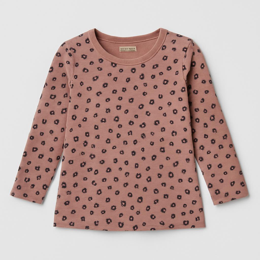 Questa adorabile maglietta a maniche lunghe in morbido cotone è perfetta per le piccole amanti dello stile! Il delicato colore rosa pesca è ravvivato da un elegante motivo leopardato in tonalità scure, rendendola un capo trendy e versatile. Il taglio leggermente svasato garantisce comfort e libertà di movimento, ideale per le avventure quotidiane. Nonostante sia un indumento usato, si presenta in ottime condizioni ed è pronto per dare un tocco di moda al guardaroba della tua bambina. Un must-have per un look chic e alla moda!