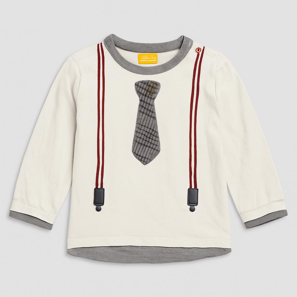 Questo adorabile maglione bianco con maniche lunghe è un vero colpo di classe per i più piccoli! Decorato con un simpatico motivo che simula bretelle e una cravatta a quadri, conferisce un look elegante ma giocoso. Realizzato in cotone morbido, è comodo e pratico per le avventure quotidiane. Perfetto per occasioni speciali o per un tocco di stile nel quotidiano, questo pezzo usato è in buone condizioni e pronto per essere indossato da un piccolo gentleman! Un must-have per ogni guardaroba!