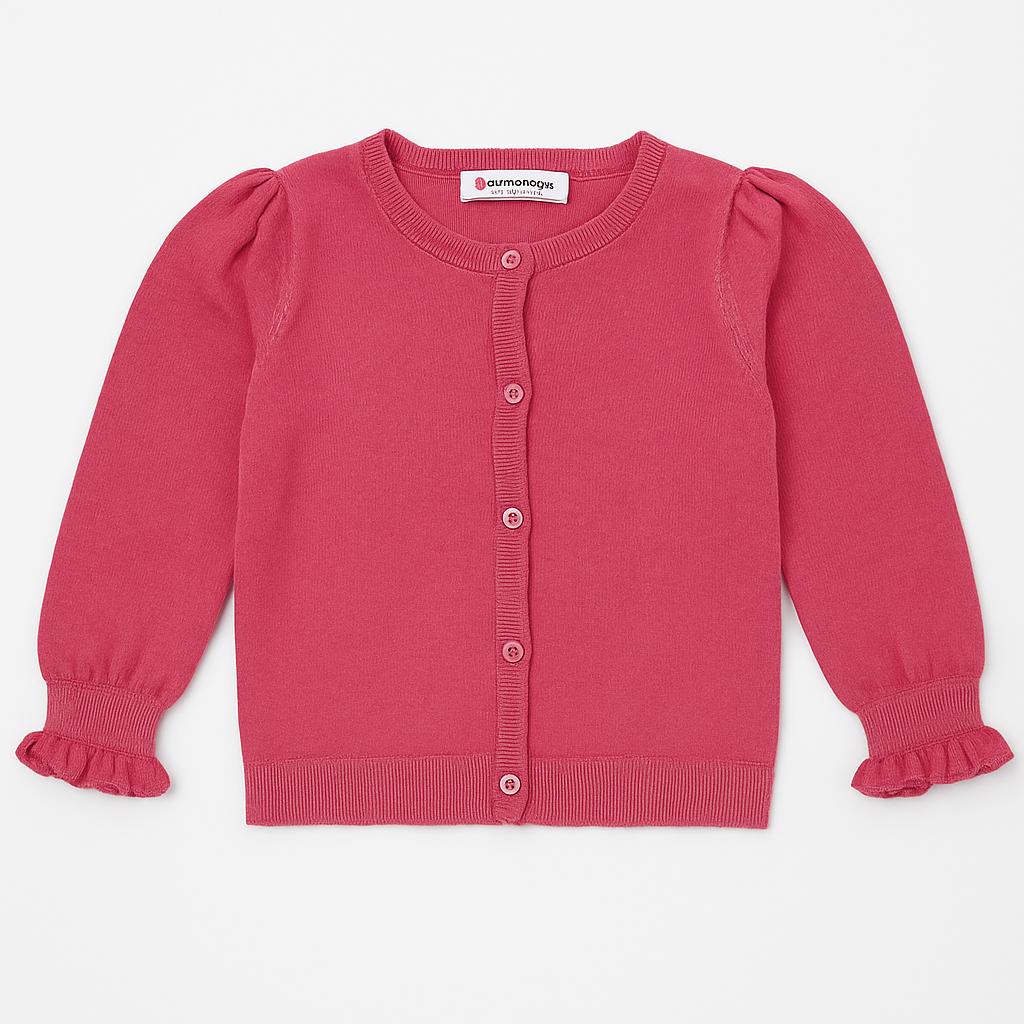 Questo adorabile cardigan rosa è un'aggiunta perfetta al guardaroba della tua piccola! Realizzato in un morbido filato, il suo delicato colore pastello riscalderà le giornate più fresche. Le maniche a sbuffo con dettagli a ruffles donano un tocco femminile e divertente, mentre i bottoncini frontali fanno di questo cardigan un capo pratico da indossare. Nonostante sia usato, si presenta in ottime condizioni, pronto a regalare comfort e stile a ogni outfit. Perfetto per accompagnare le piccole nella loro quotidianità!