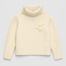 Questo delizioso maglione di lana color crema è un caldo abbraccio per le giornate fredde! Con il suo colletto alto e il suo design morbido, è perfetto per tenere al caldo la tua piccola. La sua texture tricot è vivace e confortevole, mentre il grazioso motivo floreale ricamato sul petto aggiunge un tocco di dolcezza e originalità. Nonostante sia un capo usato, si presenta in ottime condizioni, pronto a diventare il pezzo forte di qualsiasi outfit invernale. Ideale per essere abbinato a jeans o gonne, farà sentire ogni bambina speciale e alla moda!