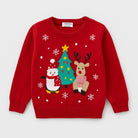 Questo adorabile maglione rosso è perfetto per rendere il Natale dei tuoi piccoli ancora più magico! Realizzato in un morbido materiale, presenta un divertente design con un pupazzo di neve, un allegro renna e un albero di Natale. Le decorazioni a tema festivo con dettagli ricamati e scintillanti donano un tocco di allegria.