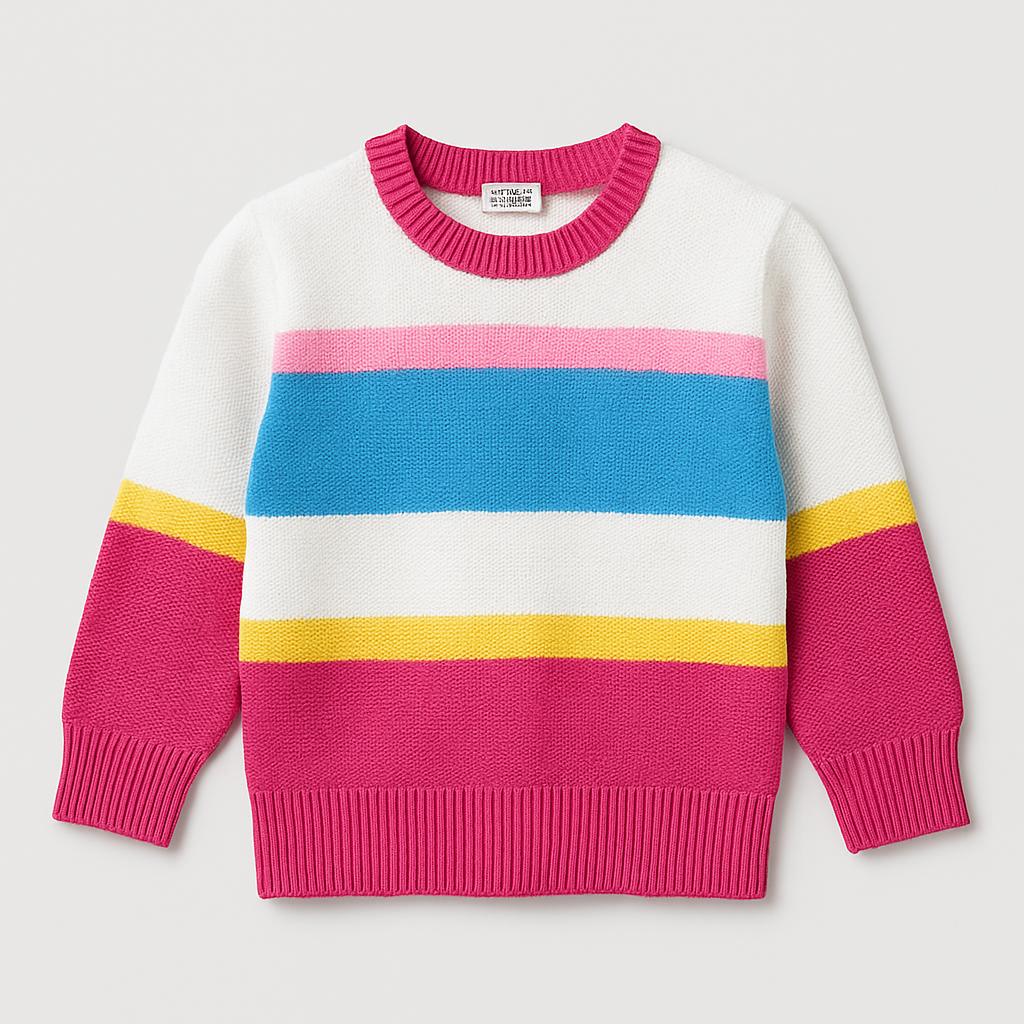 Questo adorabile maglione accompagnerà il tuo piccolo nei giorni freschi con stile! Realizzato in morbido materiale, presenta un design a righe vivaci in rosa, blu, giallo e bianco, perfetto per portare un tocco di allegria. Il taglio ampio e le maniche a sbuffo garantiscono comfort e libertà di movimento durante il gioco. Nonostante sia un capo usato, è in ottime condizioni e pronto per essere indossato da un piccolo esploratore. Un must-have nel guardaroba per chi ama il colore e la vivacità!