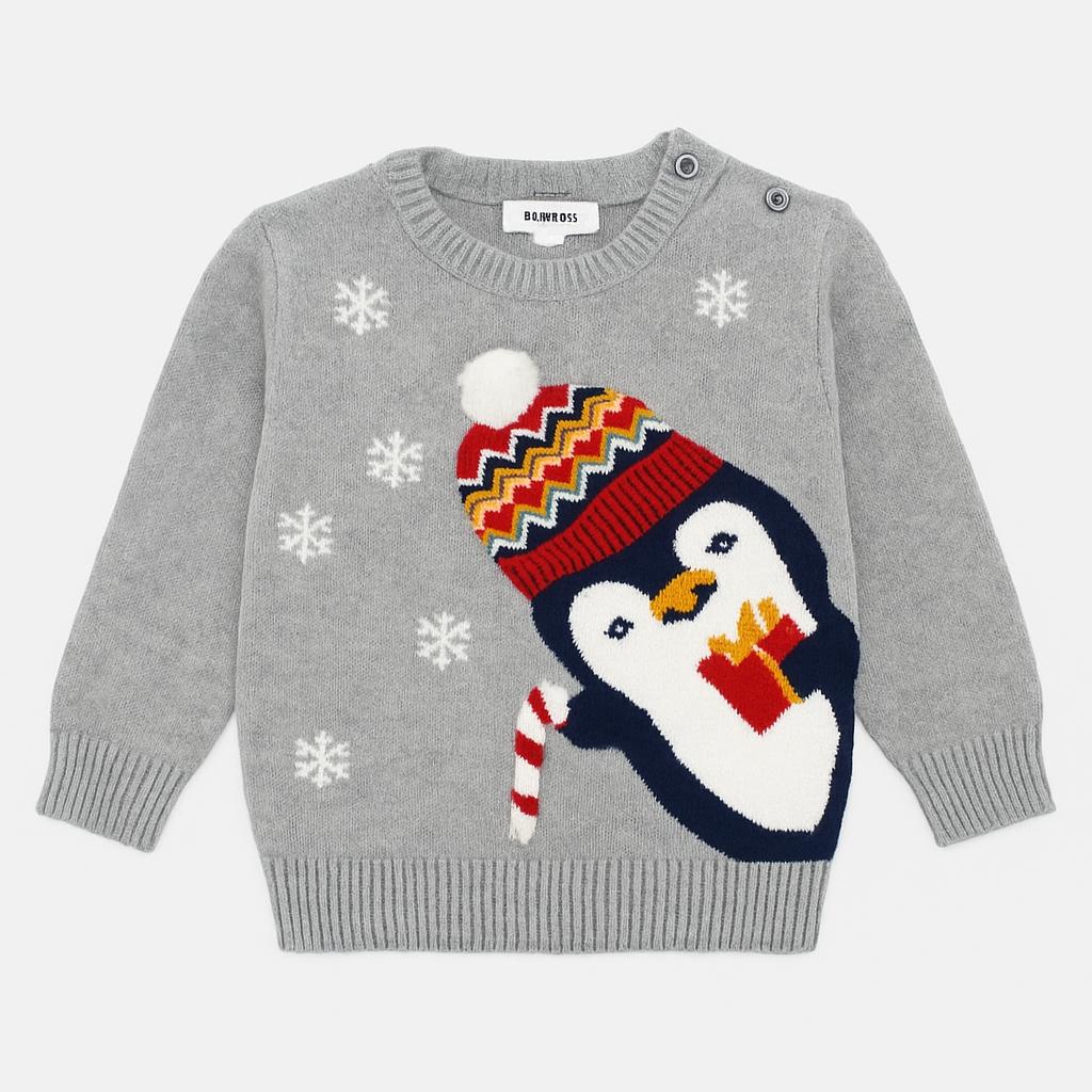 Questo adorabile maglione grigio è il compagno perfetto per le fredde giornate invernali! Con un simpatico pinguino ricamato che indossa un cappello festivo e tiene in mano un bastoncino di zucchero, questo pull è un vero inno al divertimento natalizio. Le maniche lunghe e il morbido tessuto garantiscono calore e comfort, mentre i dettagli in rilievo rendono il capo ancora più speciale. Ideale per un look giocoso e accogliente, è perfetto per feste, giochi sulla neve o semplicemente per coccolarsi a casa! Nonostante sia usato, si presenta in ottime condizioni e sarà un'aggiunta amata al guardaroba invernale dei tuoi bimbi!