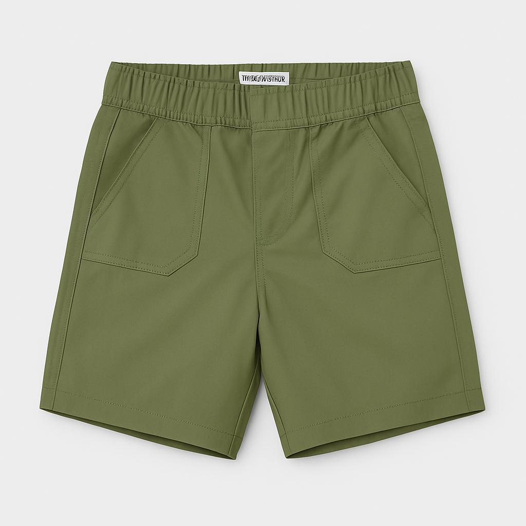 These adorable olive green shorts are perfect for your little ones' summer adventures! Crafted from a lightweight, durable fabric, they ensure comfort and freedom of movement. The front pockets add a practical and stylish touch, perfect for storing little treasures. The elastic waistband ensures a perfect, comfortable fit. Despite being pre-owned, they're in excellent condition and ready for your little one to enjoy on those warm, sunny days. A must-have for your summer wardrobe!