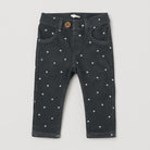 These adorable dark gray corduroy pants are perfect for your little one! Decorated with cute white stars, they add a touch of whimsy and style to any outfit. The comfortable fit and elastic waistband ensure freedom of movement, ideal for everyday adventures. Despite being used, they are in excellent condition and ready to become your little one's favorite piece. A must-have for a playful and trendy wardrobe!