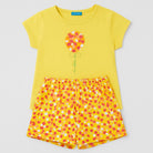 Questo adorabile pigiama composto da una t-shirt gialla e pantaloni corti è perfetto per le piccole sognatrici! La maglietta, con una dolce stampa di palloncino colorato, porta un tocco di allegria. I pantaloni corti in tessuto morbido, decorati con cuoricini vivaci, garantiscono comodità e libertà di movimento durante la notte. Perfetto per le avventure oniriche, è un capo usato ma in ottime condizioni, ideale per notti serene e piene di fantasia!
