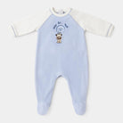 Questo adorabile pagliaccetto per neonati è l'ideale per accogliere il tuo piccolo in modo caldo e coccoloso! Realizzato in morbido cotone, presenta un delicato colore blu pastello e maniche a contrasto in tessuto a righe. La simpatica stampa di un adorabile orsetto sul davanti rende il design ancora più affascinante. Con i suoi piedini integrati, mantiene i piedini del tuo bambino al caldo e permette di muoversi liberamente. Sebbene sia un capo usato, si presenta in ottime condizioni. Perfetto per un look adorabile e comfort durante le prime avventure del tuo bimbo!