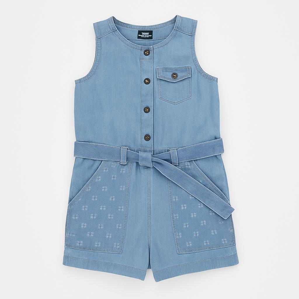 These adorable light denim overalls are perfect for trendy little ones! With their front buttons and chest pocket, they offer a practical and stylish touch. The star-printed fabric waistband adds a cute detail, while the relaxed fit ensures freedom of movement on everyday adventures. Perfect for spring and summer, they're a versatile piece that can be paired with colorful t-shirts or lightweight sweaters. Although pre-owned, they're in excellent condition, ready to make your little girl's wardrobe even more special!