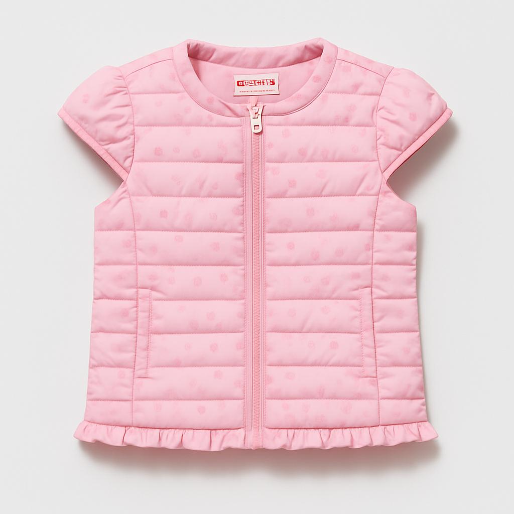 Questa adorabile giacca senza maniche in rosa pastello è perfetta per le piccole che amano stare al caldo con stile! Realizzata con un morbido materiale imbottito, offre comfort e versatilità. Il dolce design ha un delicato motivo a cuore e un tocco di eleganza grazie alle maniche a volant e al bordo arricciato. La chiusura frontale con zip è pratica e facile da usare, ideale per le piccole indipendenti. Nonostante sia un capo usato, è in ottime condizioni e sarà un'aggiunta favolosa al guardaroba della tua bimba, perfetta per le fresche giornate di primavera o le serate d'estate!