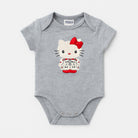 Questo adorabile body di Hello Kitty è perfetto per le piccole amanti del mitico gattino! Realizzato in morbido cotone grigio, presenta una dolcissima applicazione di Hello Kitty con un fiocco rosso, che aggiunge un tocco di tenerezza. Le maniche corte e il pratico sistema di bottoni sul fondo rendono questo body comodo e facile da indossare. Sebbene sia usato, si trova in ottime condizioni ed è ideale per le giornate estive o per un look casual e giocoso. Un capo immancabile nel guardaroba di ogni piccola fashionista!