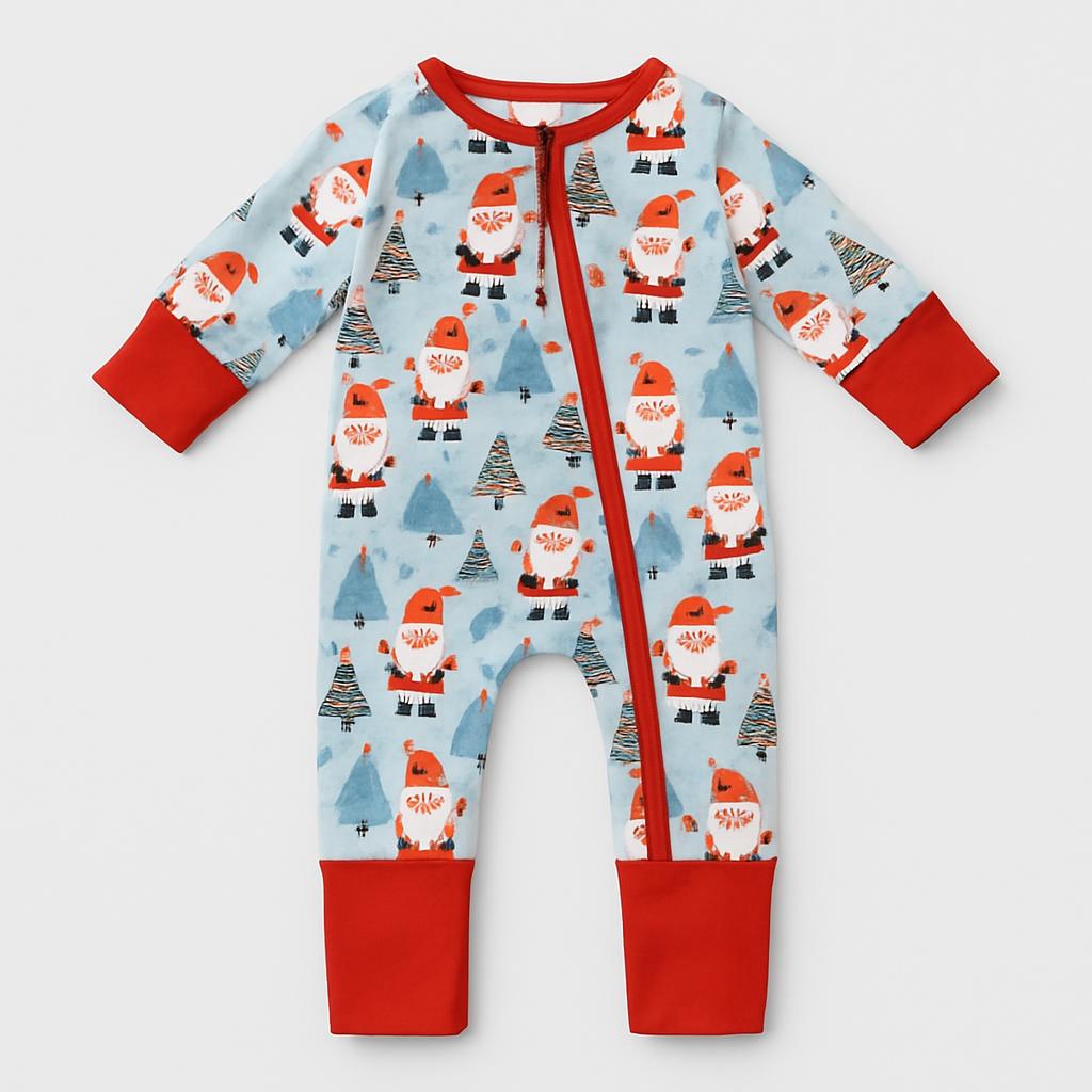These adorable Christmas-themed pajamas will make your little ones' nights even more magical! Made from soft cotton, they feature a vibrant pattern of Santa Clauses, trees, and snowflakes against a light blue background. The long sleeves and red cuffs offer comfort and warmth, perfect for cold winter evenings. The front zipper closure makes changing quick and easy. Despite being used, they are in excellent condition and ready for enchanted dreams! A must-have for the holidays!