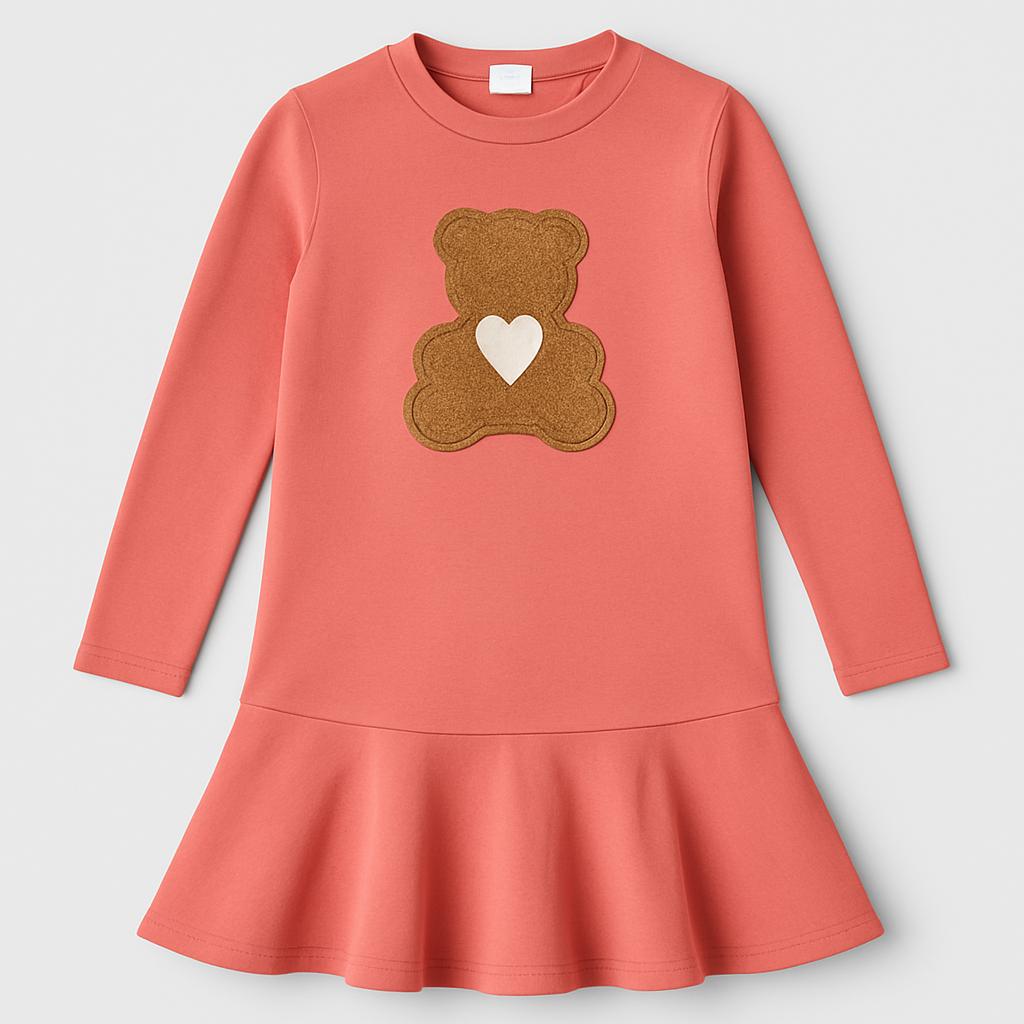 Questo adorabile abito a maniche lunghe è perfetto per le piccole amanti degli orsetti! Realizzato in morbido cotone, il suo vivace colore corallo scalderebbe qualsiasi giornata. Al centro, un tenero orsetto di feltro con un cuore bianco aggiunge un tocco di dolcezza e charme. Il taglio a ruota della gonna permette grande libertà di movimento, rendendo questo vestito ideale per giochi e avventure. Nonostante sia un capo usato, è in ottime condizioni e pronto a diventare il nuovo preferito del guardaroba! Un must-have per ogni piccola stilista!