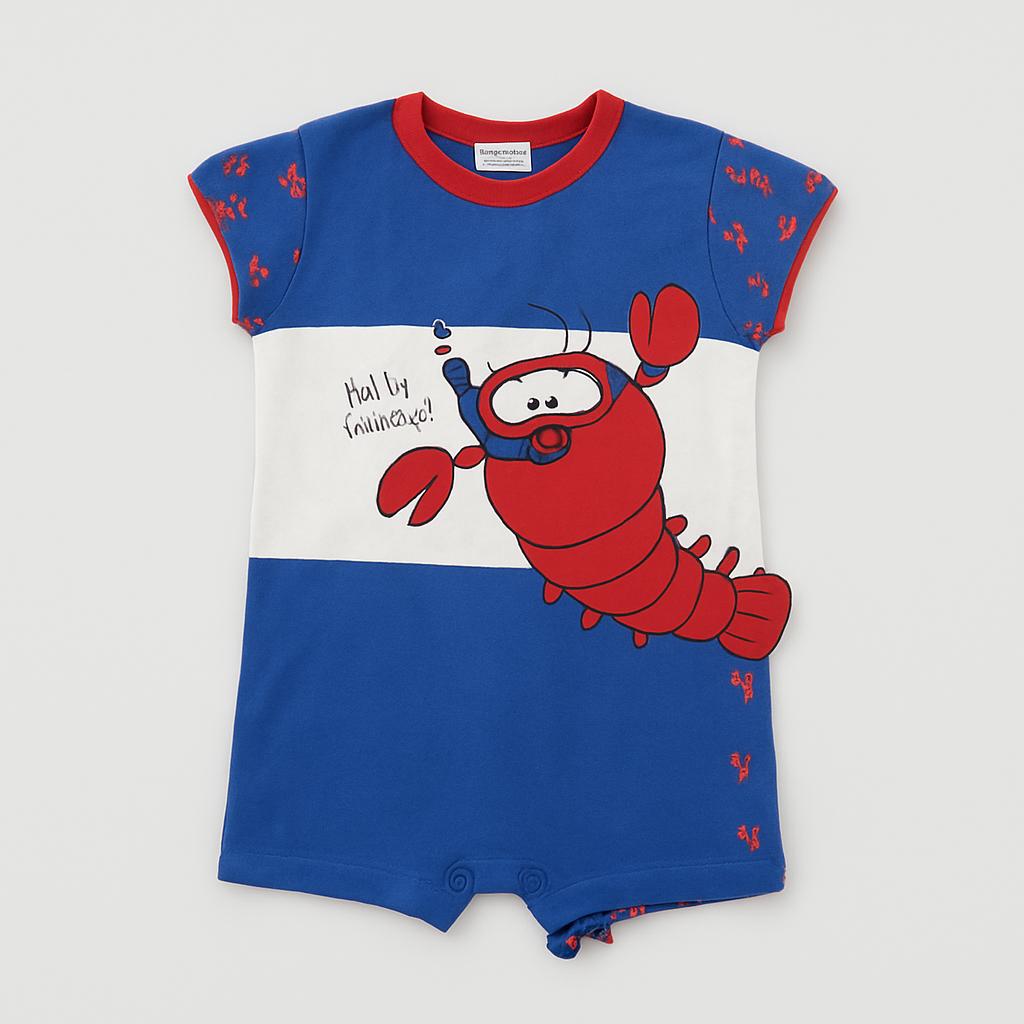 Questo adorabile pigiamino per bambini è il compagno perfetto per le notti di avventura! Realizzato in morbido cotone, presenta un vivace design blu con un simpatico astice che saluta con un “Hello friends!”. Le maniche corte e il comodo taglio lo rendono ideale per i sogni d'estate. I dettagli in rosso aggiungono un tocco di allegria e originalità. Nonostante sia usato, il pigiamino è in buone condizioni, pronto a regalare sorrisi e comfort durante le notti più calme. Un scelta divertente per i piccoli sognatori!