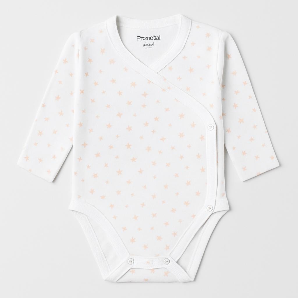 This adorable baby bodysuit by Prenatal is a sweet embrace of softness! Made of white cotton with cute peach stars, it's perfect for wrapping your little one in cuddly comfort. The long sleeves make it ideal for cool days, while the buttons on the side make changing easy. Although it's already been loved, it's in excellent condition, ready to become a bold addition to your baby's wardrobe. A practical and stylish piece, perfect for those first adventures!