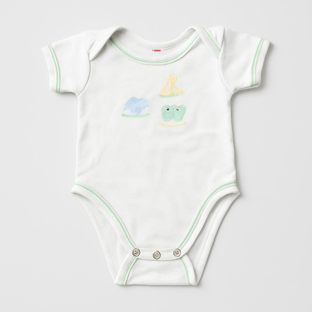 This adorable baby onesie is a must-have for your little one's wardrobe! Made from soft white cotton, it features a delicate green trim for a fresh touch. Three cute embroidered animals bring a smile to the face on the front, making it perfect for any occasion. The handy leg buttons make diaper changes easy, while the short sleeves ensure comfort on hot summer days. Despite being a used item, it's in excellent condition, ready to make every moment with your little one special!