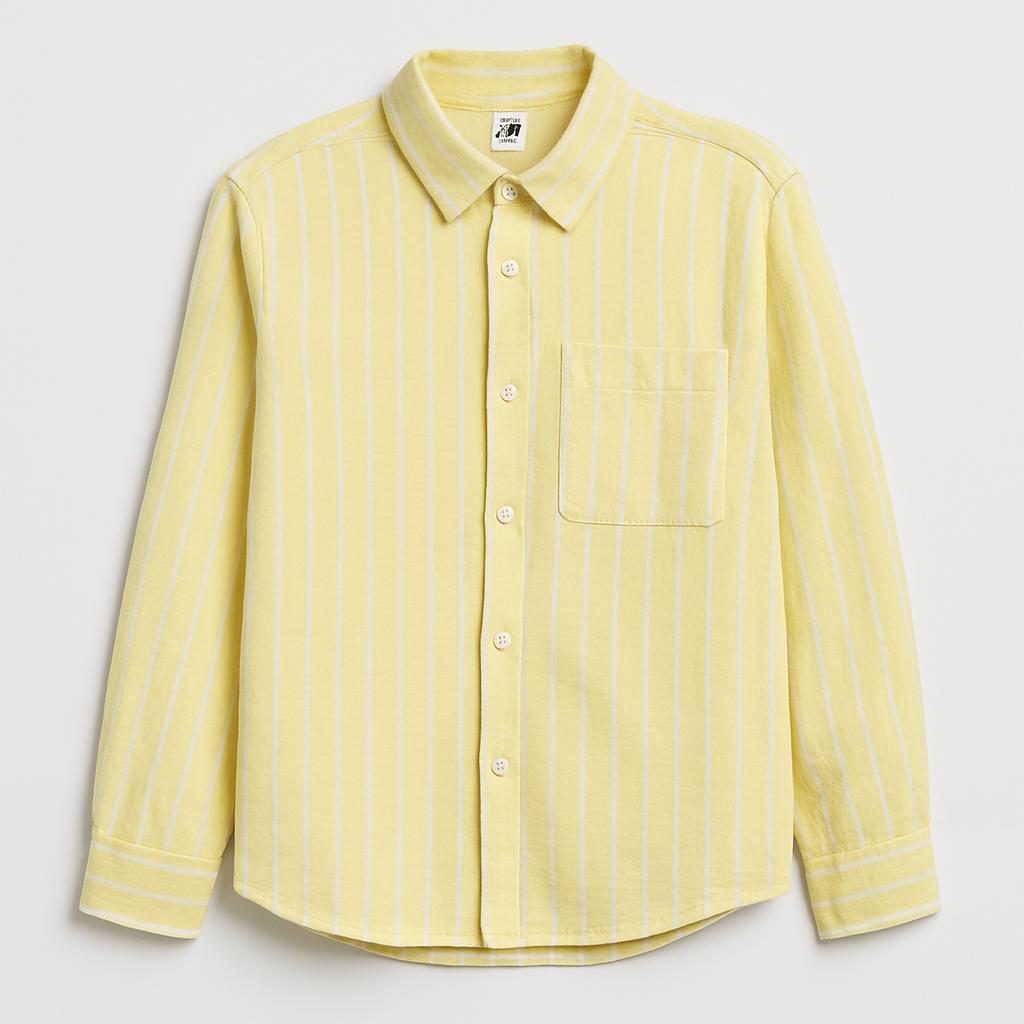 Questa fresca camicia a righe gialle è perfetta per il guardaroba del tuo bambino! Realizzata in un morbido tessuto, offre comfort per ogni avventura quotidiana. Le delicate righe bianche aggiungono un tocco di stile fresco e giocoso. Con il suo collo classico e il taschino sul petto, è ideale per creare look casual e trendy. Perfetta da indossare nelle giornate primaverili o estive, questa camicia, pur essendo usata, è in ottime condizioni e pronta per nuove scoperte e sorrisi!