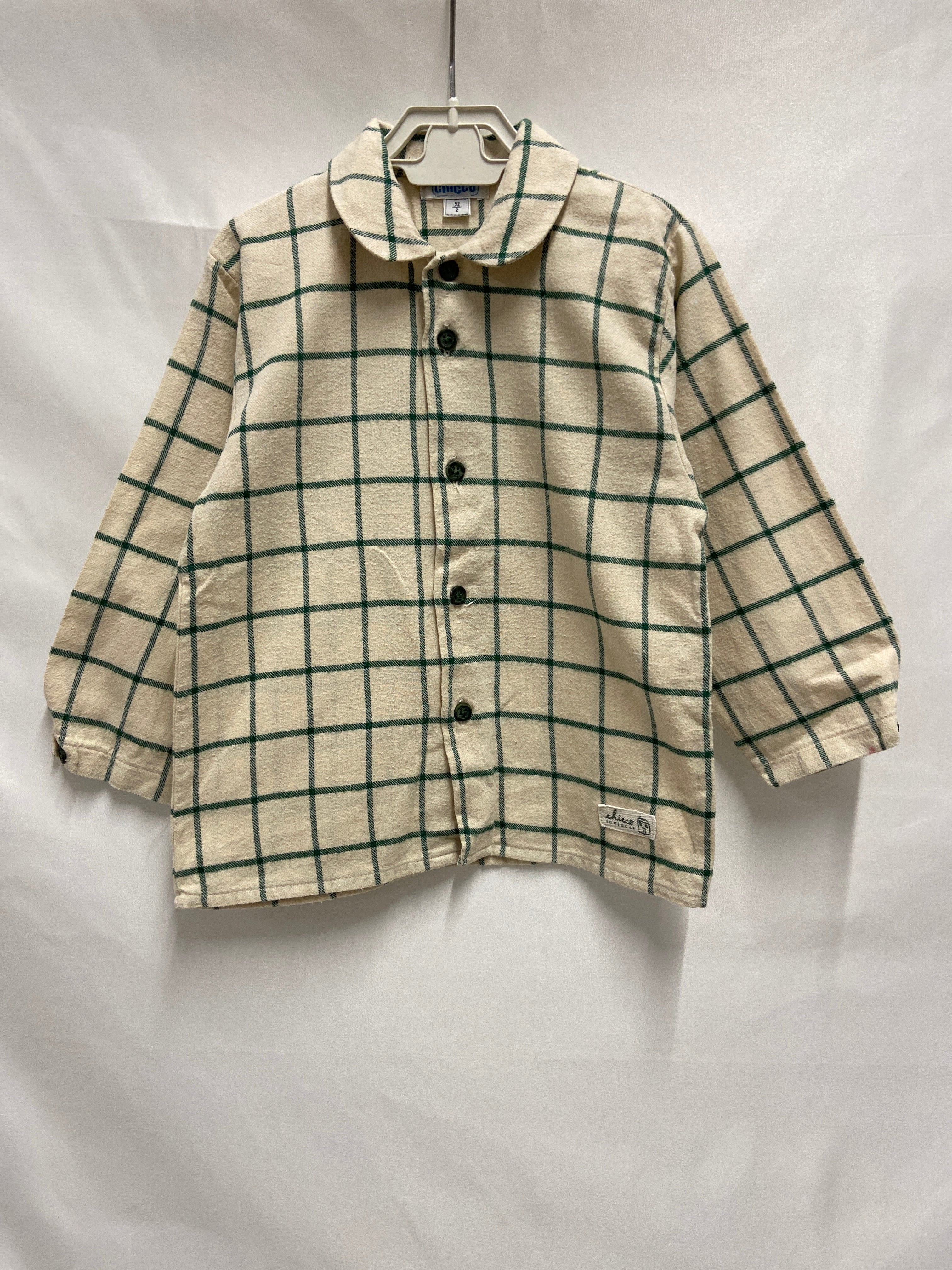 Questa adorabile giacca a quadri è un'aggiunta perfetta al guardaroba del tuo piccolo! Realizzata in un morbido tessuto, presenta un classico motivo a scacchi beige e verde che le conferisce un charme vintage e accogliente. Il design con colletto rotondo e bottoni frontali rende questo capo sia trendy che pratico, ideale per i cambiamenti di temperatura. Le maniche lunghe e il taglio ampio assicurano comfort durante il gioco e la libertà di movimento. Nonostante sia usata, è in ottime condizioni, pronta per accompagnare ogni avventura del tuo bambino! Questo è un pezzo che unisce stile e funzionalità, perfetto per piccole esploratrici e esploratori!