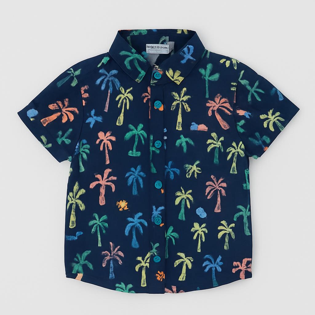 Questa camicia a maniche corte è un vero sogno estivo per i piccoli esploratori! Realizzata in un tessuto leggero, offre una freschezza perfetta per le calde giornate. Il vivace design è arricchito da palme multicolori su uno sfondo blu intenso, portando un’atmosfera di vacanza e avventura ad ogni outfit. I bottoni frontali aggiungono un tocco pratico e stiloso, mentre il colletto ben definito dona un’aria elegante e divertente al tempo stesso. Nonostante sia un capo usato, è in ottime condizioni e pronto a creare splendidi ricordi in famiglia! Ideale per giochi in giardino o feste estive.