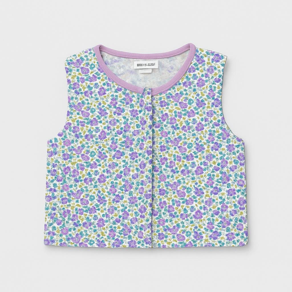Discover this delightful sleeveless tank top, perfect for your little stiletto! Crafted from a light and airy fabric, it's adorned with a charming floral motif featuring bright and cheerful colors. The front button closure adds a touch of elegance and makes it easy to put on. Ideal for sunny days or for a fresh and fun look, it's a pre-owned piece in excellent condition, ready to accompany your little girl on all her adventures! A must-have for any little fashionista!