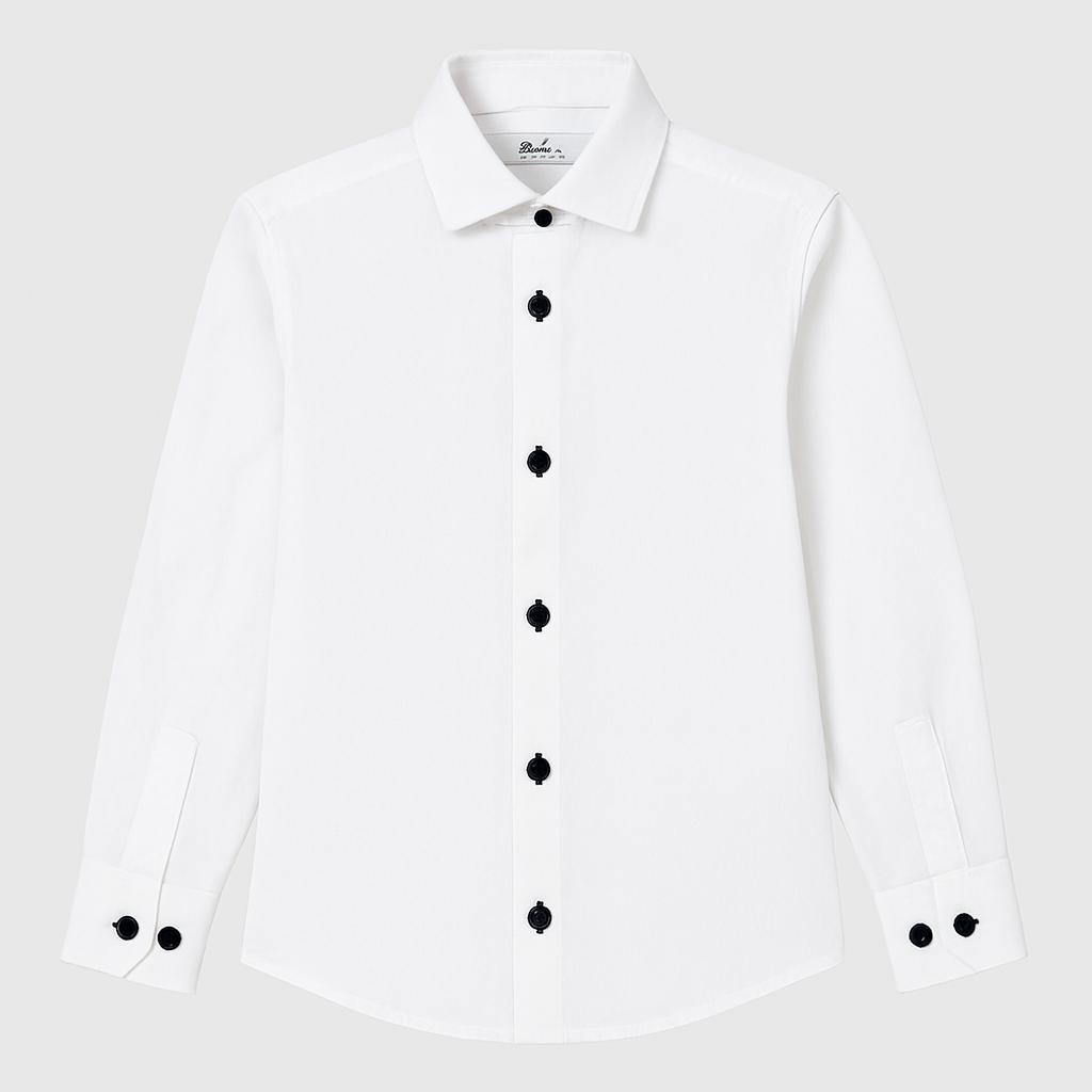 This elegant white shirt is a true must-have for your little one's wardrobe! Made from lightweight, breathable fabric, it offers comfort and style for any occasion. The contrasting black button closure and decorative cuffs add a touch of originality and class. Perfect for formal occasions, parties, or a special dinner, this shirt pairs easily with elegant trousers or jeans. Although it is a used item, it is in excellent condition, ready to make any outfit unique and sophisticated! A must-have for little gentlemen!
