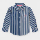 Questo elegante camicia a righe per bambini è un'aggiunta perfetta al guardaroba dei tuoi piccoli! Con un raffinato motivo a righe blu e bianche, questa camicia è versatile e si presta a molteplici occasioni. Il colletto classico e le maniche lunghe offrono un look sofisticato, ideale per eventi speciali o per una giornata in famiglia.